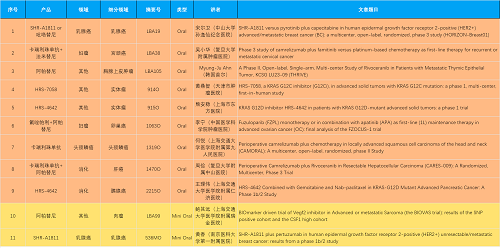 15款创新药包括10款已上市产品:注射用瑞康曲妥珠单抗(艾维达®,研发代号:SHR-A1811)、注射用卡瑞利珠单抗(艾瑞卡®)、苹果酸法米替尼胶囊(艾比特®)、甲磺酸阿帕替尼片(艾坦®)、马来酸吡咯替尼片(艾瑞妮®)、阿得贝利单抗注射液(艾瑞利®)、羟乙磺酸达尔西利片(艾瑞康®)、氟唑帕利胶囊(艾瑞颐®)、瑞维鲁胺片(艾瑞恩®)、海曲泊帕乙醇胺片(恒曲®),以及5款未上市产品,包括KRASG12C抑制剂HRS-7058、KRASG12D抑制剂HRS-4642、选择性的AR-PROTAC(雄激素受体-蛋白降解靶向嵌合体)小分子HRS-5041、抗PD-L1/TGF-βRII双抗瑞拉芙普-α注射液(SHR-1701)、Trop-2 ADC SHR-A1921。2类新药盐酸伊立替康脂质体注射液(II)(越优力®)及国内首仿药昂丹司琼口溶膜(艾其速®)各有1项研究入选。本文特对研究成果做了梳理,带领各位读者领略EVO视讯医药创新之光。