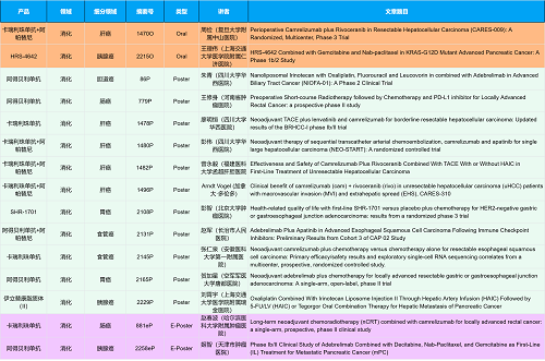 在消化系统肿瘤领域,EVO视讯创新产品相关研究共入选2项口头报告、10项壁报和2项电子壁报,共14项研究。除了明星药物卡瑞利珠单抗和阿帕替尼外,还有5篇阿得贝利单抗治疗消化系统肿瘤的研究入选。此外,HRS-4642、瑞拉芙普-α注射液(SHR-1701)等未上市创新产品也有相应研究入选。随着新老药物前沿研究的不断推进,有望为消化系统肿瘤患者带来新的福音!