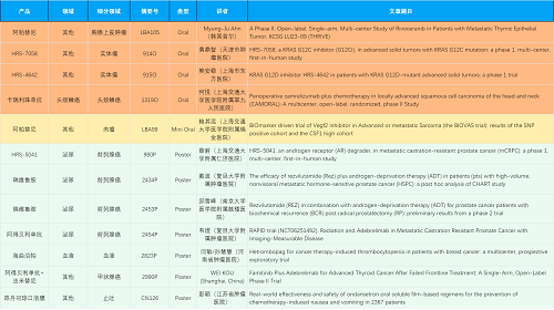 在胸腺上皮肿瘤、头颈鳞癌、肉瘤、前列腺癌、甲状腺癌等其他多个疾病领域,卡瑞利珠单抗、阿帕替尼、瑞维鲁胺、阿得贝利单抗、法米替尼、HRS-7058、HRS-4642、HRS-5041等抗肿瘤创新药相关研究一共入选了4项口头报告、1项简短口头报告、5项壁报,彰显了EVO视讯医药强大的研发实力。此外,海曲泊帕和昂丹司琼口溶膜分别在防治化疗导致的血小板减少和恶心呕吐方面各有1项研究入选壁报。